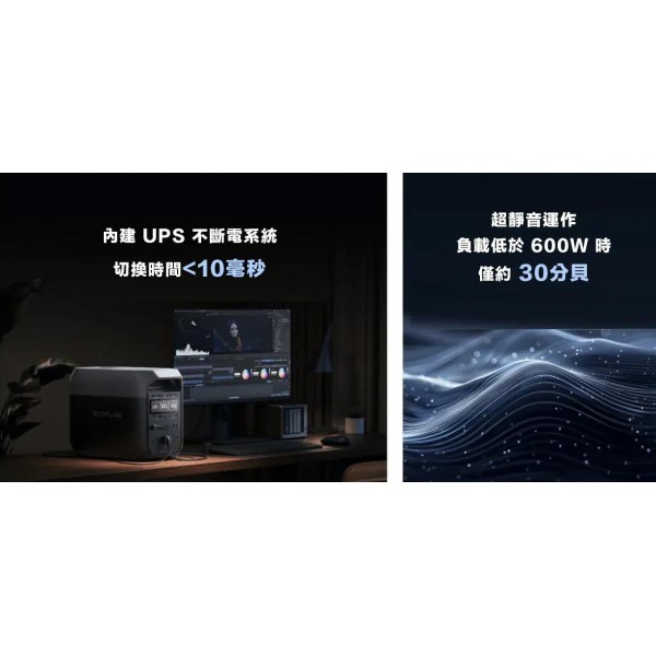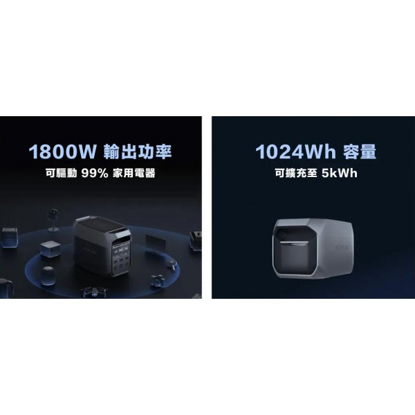 提供 1800W AC 輸出功率,啟用 X-Boost 模式可達 2200W(瞬間最大 3600W)