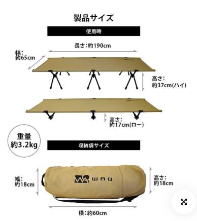 WAQ 的行軍床 CP值一直是許多使用者讚賞的,可使用低板與行軍床增高腳,在帳篷內都很好搭配!